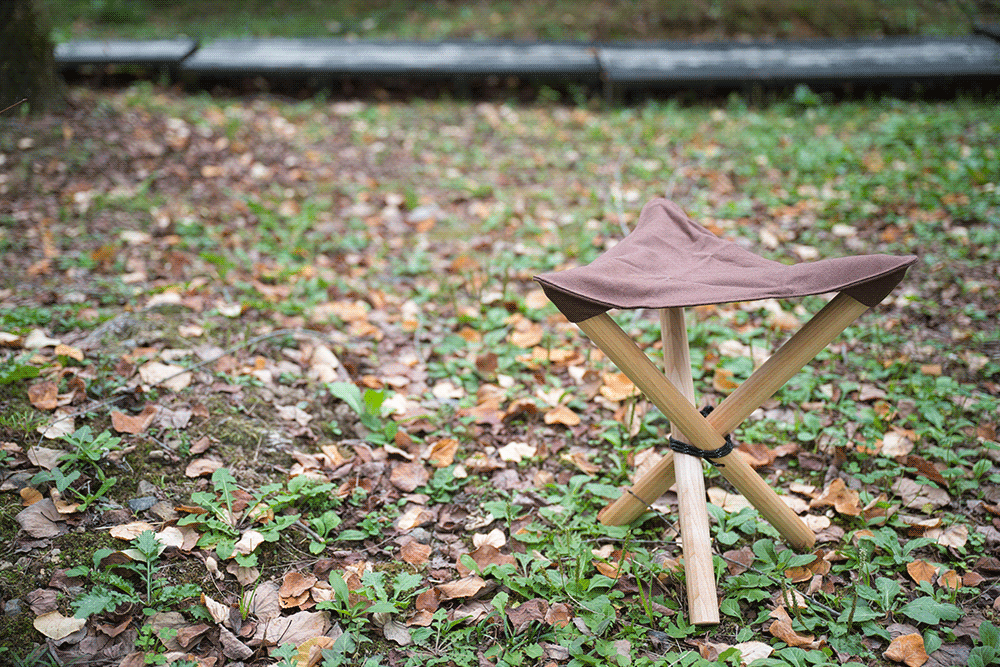 つなぐ「わ」削り馬と南京鉋を使って木の棒を丁寧に削り、三角スツールの脚をつくります。帆布を草木染めした座面付き。場所を選ばず腰掛けとして使えます。 - 日時