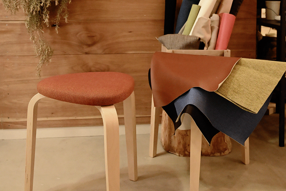 studio recordIKEAの「KYRRE」をベースに、一級椅子張技能士の指導とアシスタントのサポートで、座面を張り替える本格ワークショップです。張り地はファブリックや合皮など30種類からセレクト可能。選ぶ素材や色で、雰囲気がガラリと変わるのも楽しみのひとつ。当日持ち帰れます。 - 日時