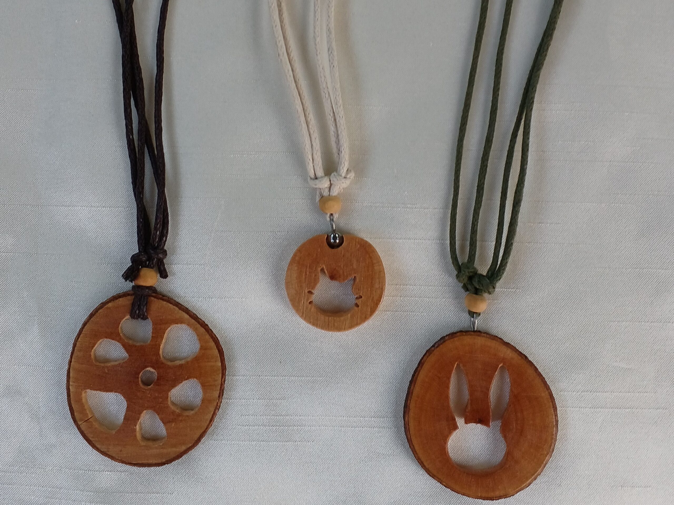 木彫アクセサリー、温もりのある木製おもちゃ。
