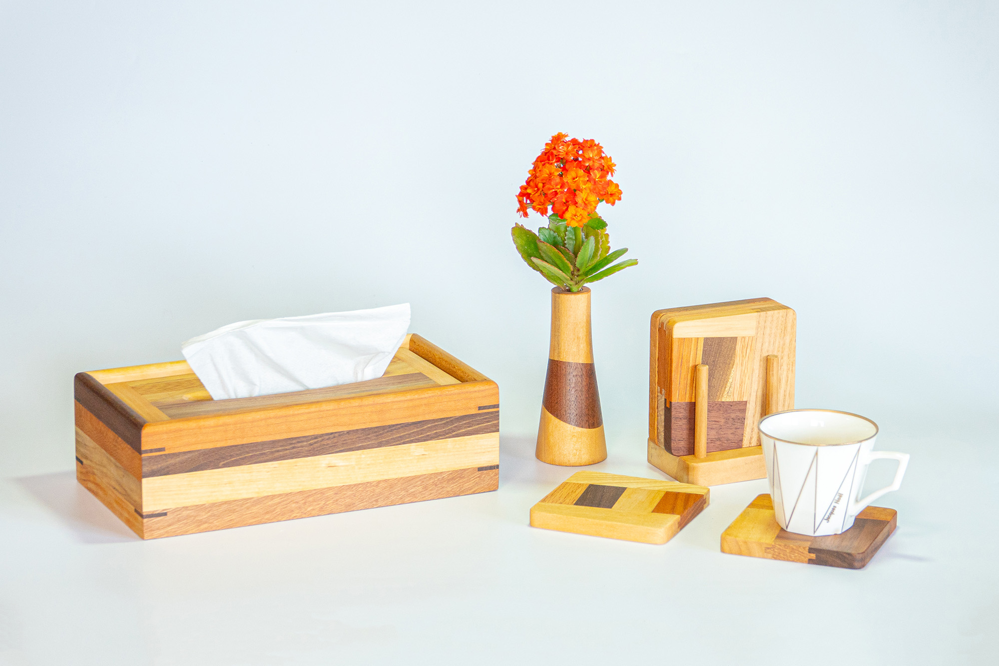 寄木アクセサリーや一輪挿しなど広葉樹を丁寧に磨き上げました。