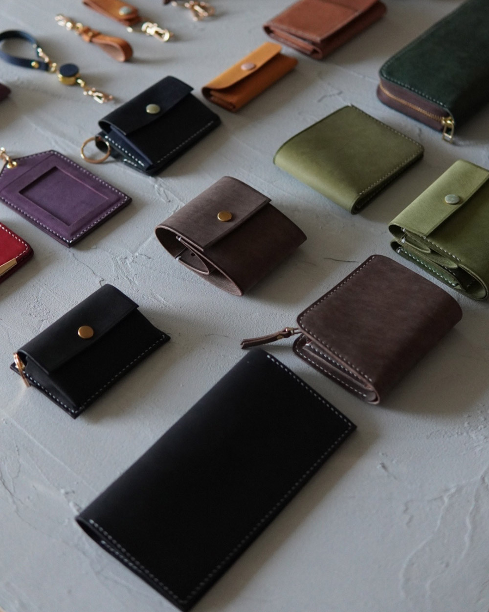 多種の革と45色の糸を組み合わせた触り心地まで一点モノ革工芸。