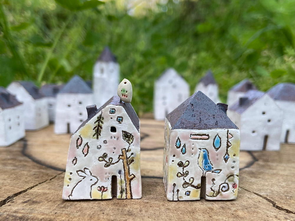 絵本に出てくるような家や動物の陶板や置物などの陶小物です。